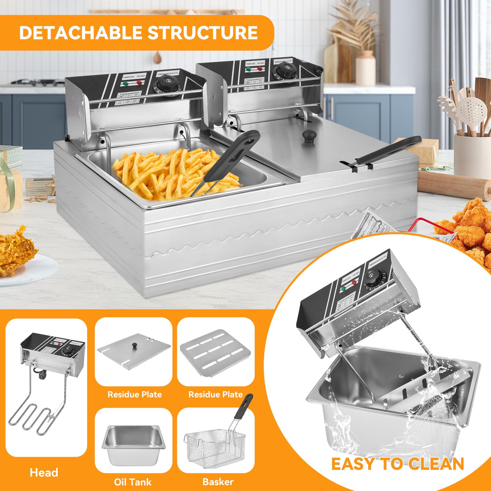 12L Electric Deep Fryer Commercial Kitchen Fry Basket Oil Temperature Control
