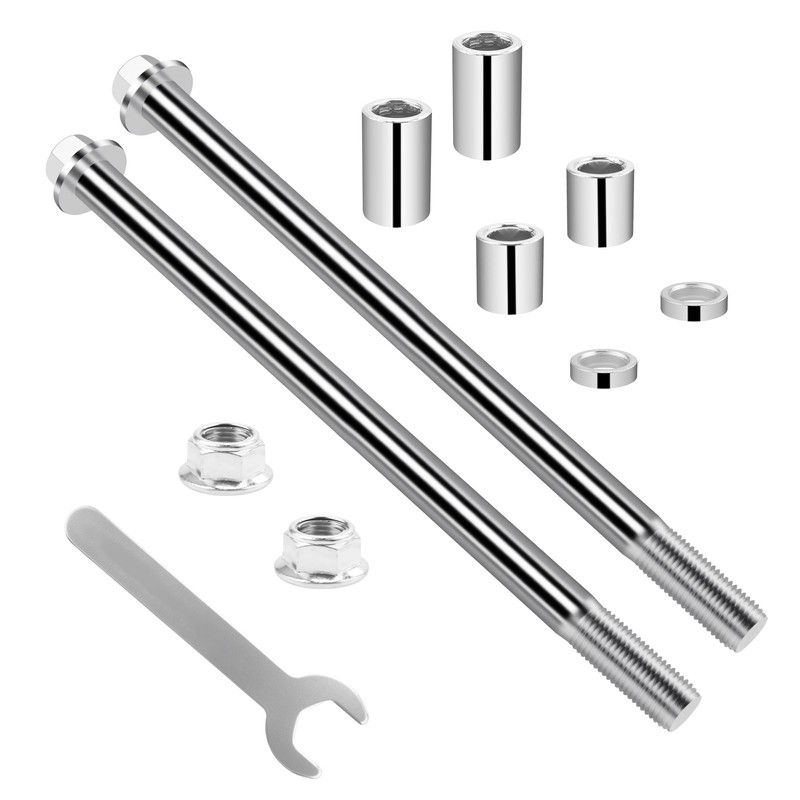 - Package: 2 Pcs 12mm/0.47'' x 205mm/8.0'' Rear Rim Wheel Axle;2 pcs 12 x 5mm Bushing, 2 pcs 12 x 20mm Bushing,2 pcs 12 x 30mm Bushing. 1pc x Spanner. Please Check The Axle Length Carefully Before Your Purchase