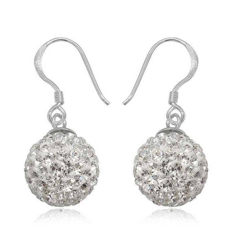 - 12MM WOMENS Sparkly Silver Disco Ball Drop / Hook / Dangly Earrings - WHITE CRYSTAL (or Choose From 33 Different Colours) - Bling 925 Sterling Silver Austrian Crystal Earrings - Best Quality.