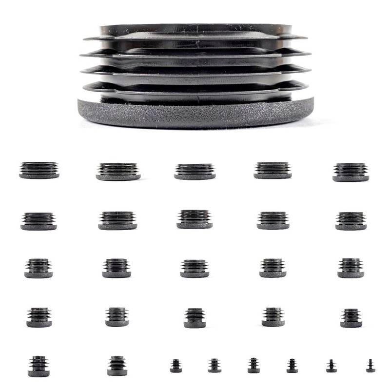 12mm Plastic End Caps, Black Round Tube Inserts, Pack of 4 (See Second Image for Ordering Guide) - Made in Germany