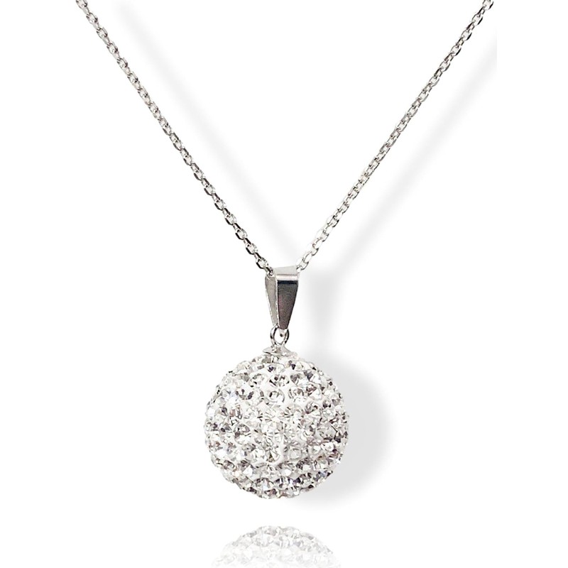 12MM Sparkly White/Clear Austrian Crystal Pave Round Disco Glitter Ball Sterling Silver Pendant Necklace On 16" Inch Curb Chain for Women/Ladies/Girls - 12mm W X 20mm H - Sparkling Shamballa Style