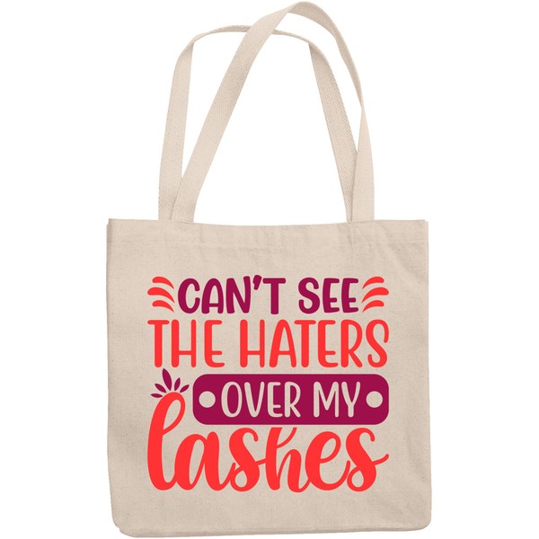 12oz Canvas Tote Bag - Cannot See the Haters Over My Lashes, Witty Eyelashes Quote - Beauty Themed Merch for Makeup Artist or Cosmetologist, Gift for Makeup Lovers & Beauticians