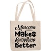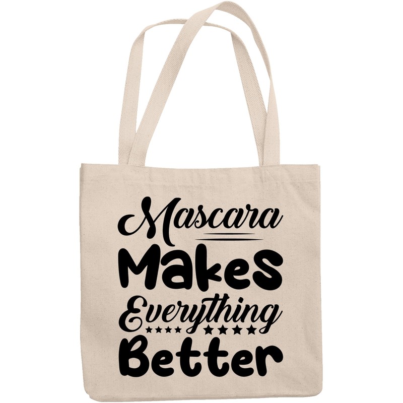 12oz Canvas Tote Bag - Mascara Makes Everything Better, Eyelash Artists Quote - Beauty Themed Merch for Makeup Artist or Cosmetologist, Gift for Makeup Lovers & Beauticians