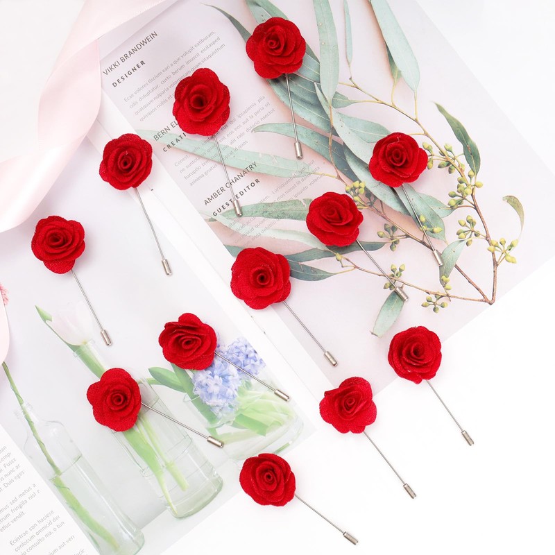 - Exquisite Handcrafted: The 12pcs boutonniere for men are handcrafted. Each pins has been carefully designed with exquisite details and outstanding texture. The combination of polyester satin and alloy viscostitch is not only durable but also elegant, adding a unique charm to your suit or jacket and instantly elevating your look to a higher level