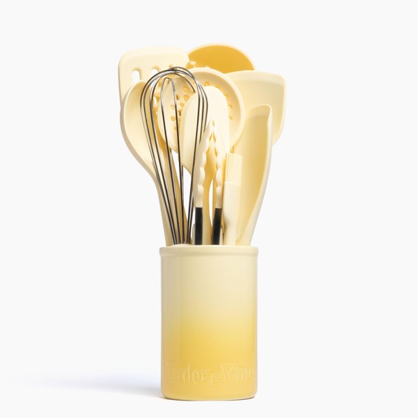 12pc Silicone Kitchen Utensils with Stainless Steel handles and Ceramic holder | Limoncello