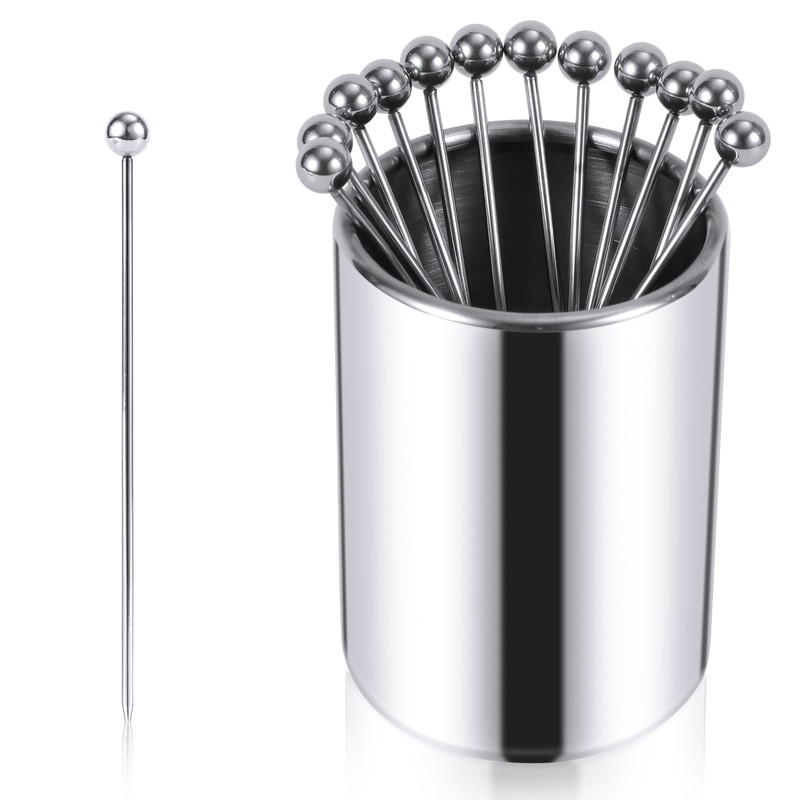 • Package Content: You will receive 12 pieces of stainless steel cocktail picks, which are reusable and washable, coming with 1 sturdy stainless steel holder.