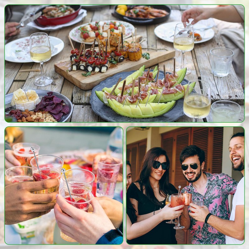 - Multiple Usage: These appetizer skewers can not only be used in exquisite cocktail decoration, but also can be applied to sandwiches, drinks, fruits, desserts, etc. It's a perfect choice for weddings, festivals, birthdays and other parties.