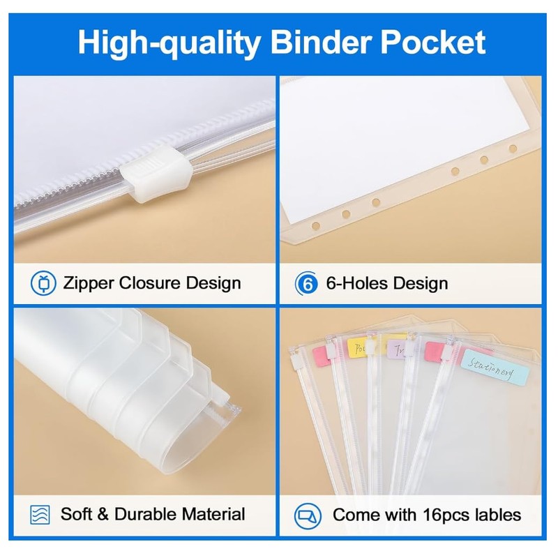 • About this item Size: 6.9 x 4.1 inch, can keep bill, money, vouchers, name card, credit cards, ID card etc tidy and organized Antner zipper binder pocket made from durable PVC. It is resists tearing and is acid-free and archival safe Pockets are 6-hole-punched, translucent material clear view for quick and easy identification, good for 6-ring notebook binder Protect and store your bills and invoices without having to hole punch them, convenient, fast, and maintain the integrity Suitable for any occasions, lightweight and easy to carry, great document organizer for home, office, meeting, school use, and travel
