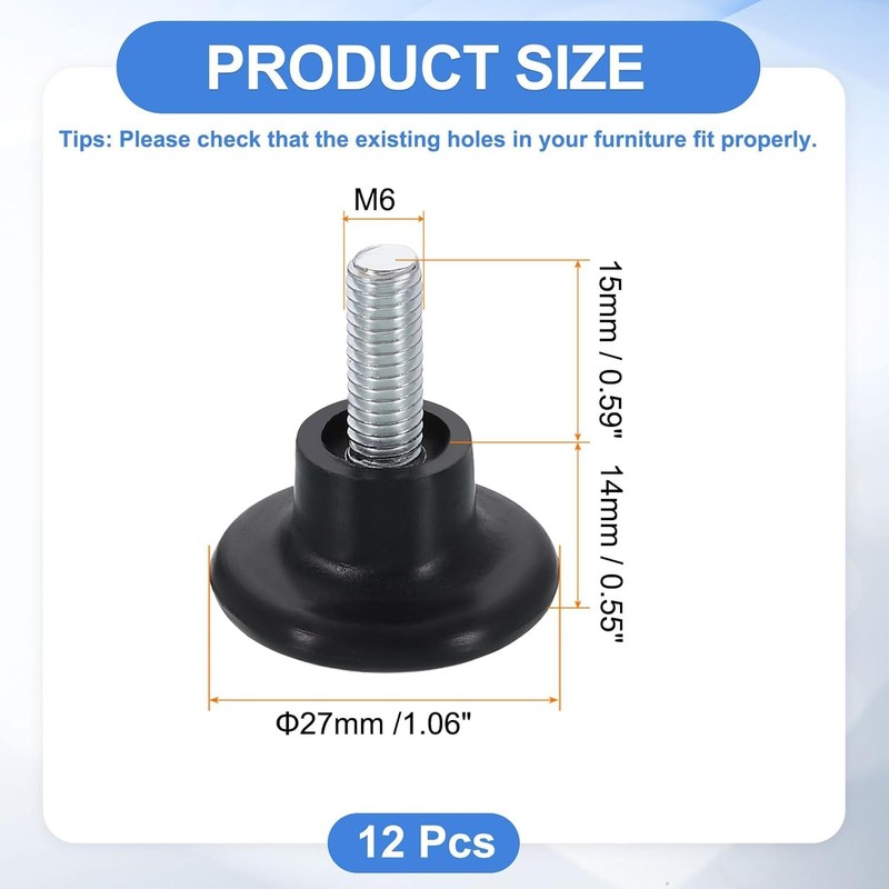 - 【Precise Dimensions for Perfect Fit】 The adjustable feet feature a 13mm threaded shaft and a 28mm diameter base. Please verify the size before purchasing to ensure compatibility with your furniture.