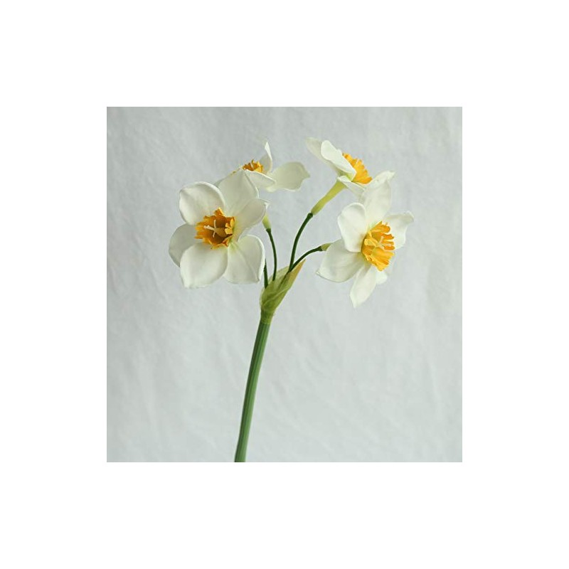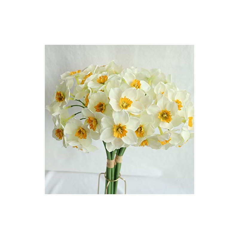 12PCS Artificial Daffodil Tulips Flowers Yellow Spring DIY Silk Flower Arrangement (White)