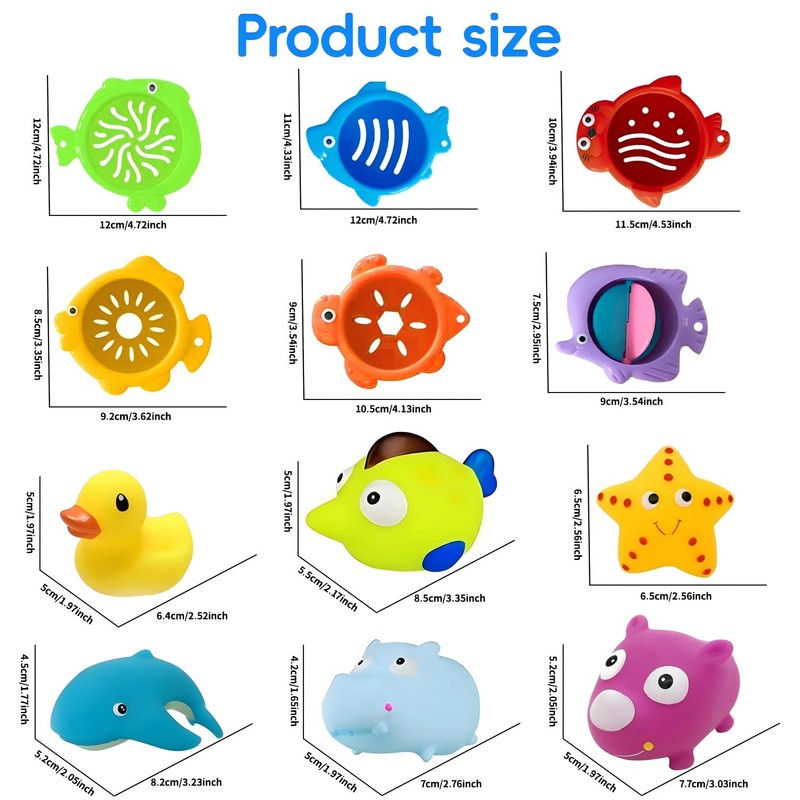 - đăBaby Bath Toys SetăThis toddler bath toy collection includes 6 Ocean Stacking Cups, 1 Sperm Whale, 1 Hippo, 1 Eye Bag Duck, 1 Starfish, 1 Rhino, and 1 Fish. Perfect bathtub toys for kids to enjoy in the bath or swimming poolâideal bath toys for ages 1-3, and great for babies 0-6-12 months too.