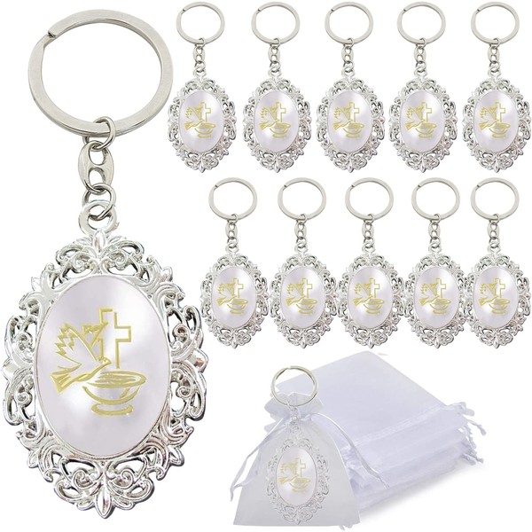 - 12 PCS Personalized cross with dove Baptism or christening metal keychian Party Favor for boys and girls.