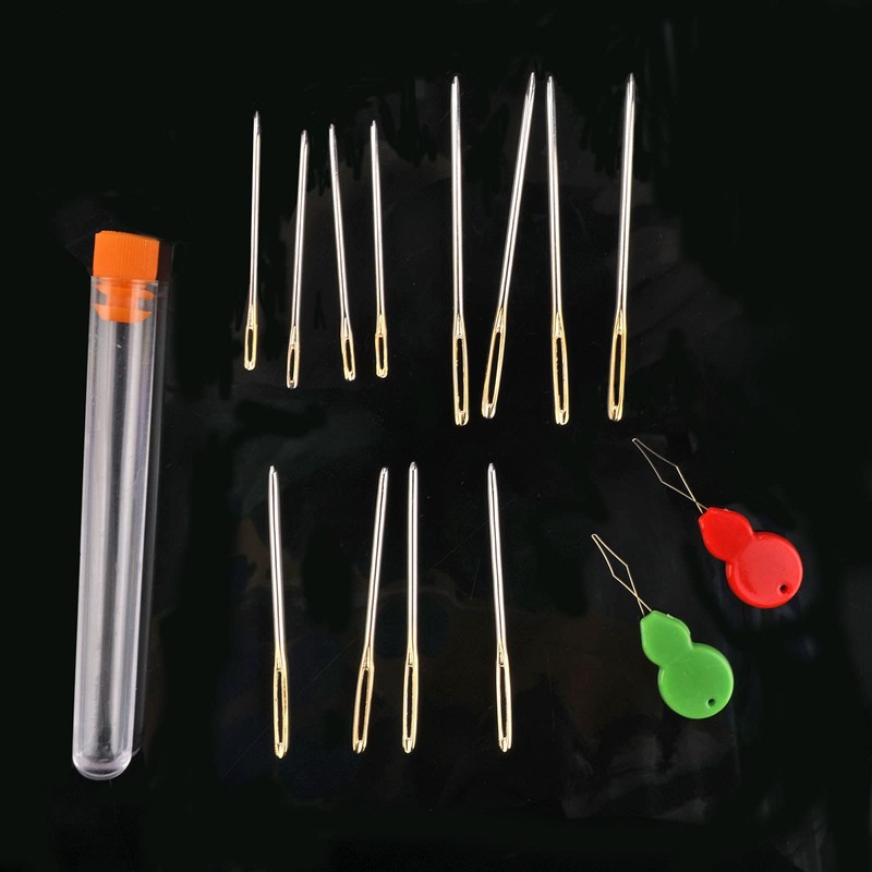 12pcs Blunt Needles with Large Eyelets Gold Eyelets Stainless Steel Sewing Needles Large Eyelets Self Threading with 2 Needle Threader 1 Clear Plastic Test Tube for Hand Embroidery Fur Leather
