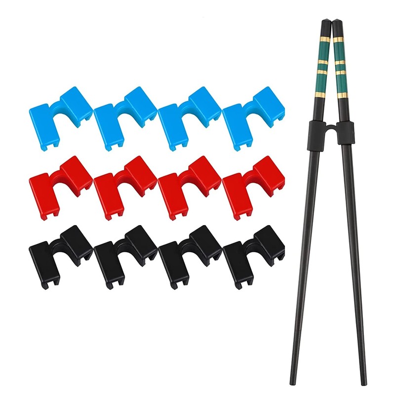 - 【Package Include】12 Pieces reusable chopstick helpers,4pcs red 4pcs blue and 4pcs black.