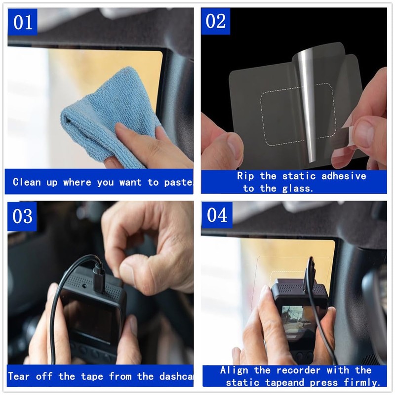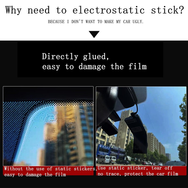 - 【Easy to Use】: Just clean up the place that needs to be pasted, and then paste the electrostatic sticker on the glass surface, and paste the driving recorder on the electrostatic film. It is also easy to disassemble without residue.