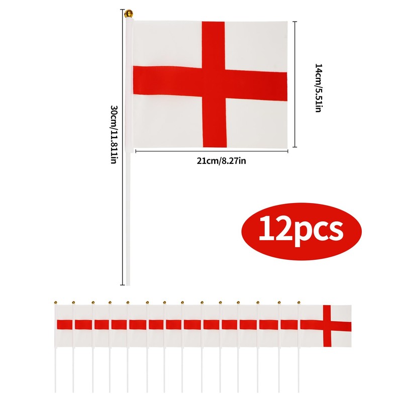 - Buyers will receive a set of 12 durable handheld flags featuring the iconic England design, perfect for showing support during
