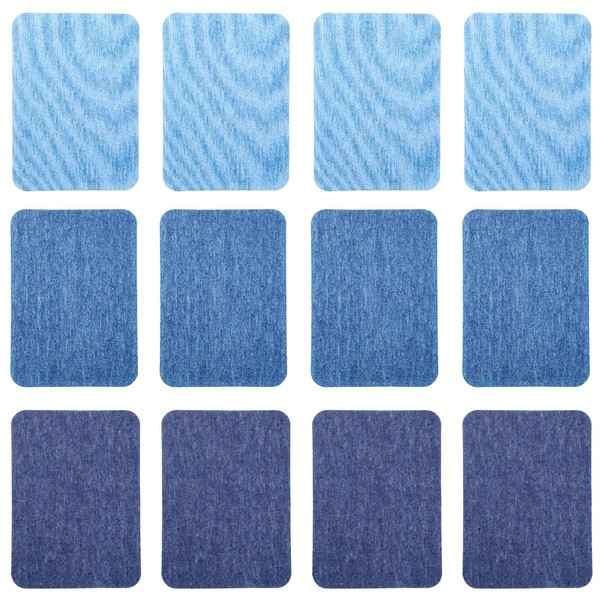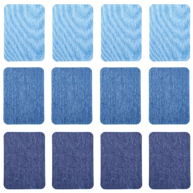 12Pcs Fabric Repair Patches, 4 x 3 Inches Cotton Iron on Patches for Clothing Inside & Outside Repair, Fabric Patches for Denim Jean Clothes Repair Decorating Kit (Light Blue&Sky Blue&Dark Blue)