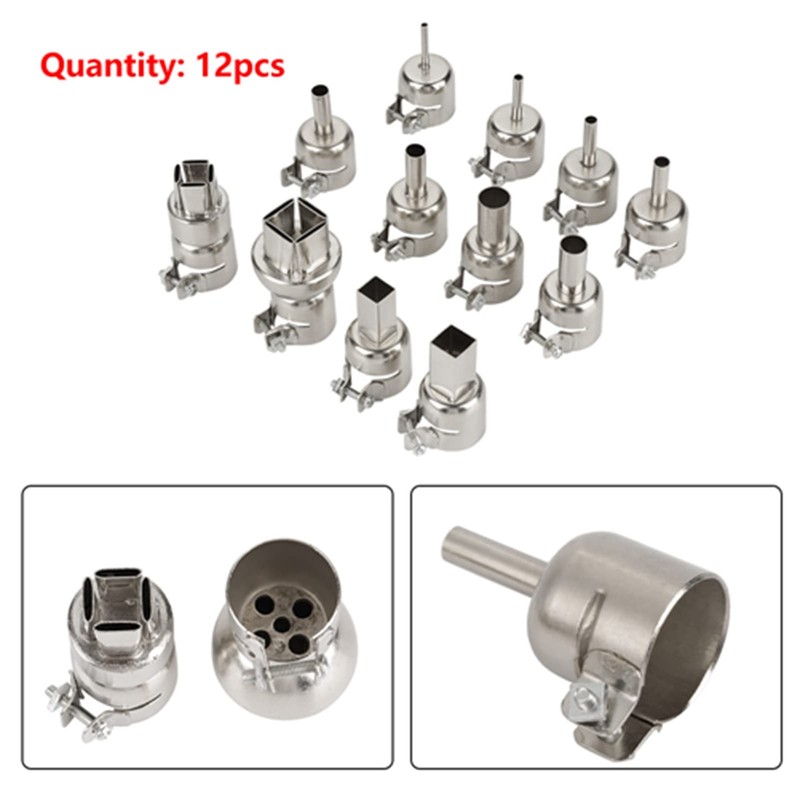 - DURABLE STEEL CONSTRUCTION: Crafted from high-temperature-proof steel, these heat guns attachments maintain structural integrity during prolonged soldering operations. Includes 12 nozzles for multiple application needs
