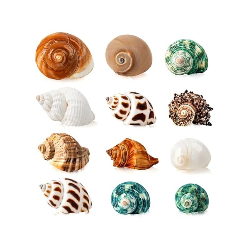 12PCS Hermit Crab Shells | Natural Sea Conch Size 1.6"-3.2" | Growth Turbo for Small to Medium and Large Crabs, Saltwater Hermit Crab Supplies and Sea Shell for Beach Decor