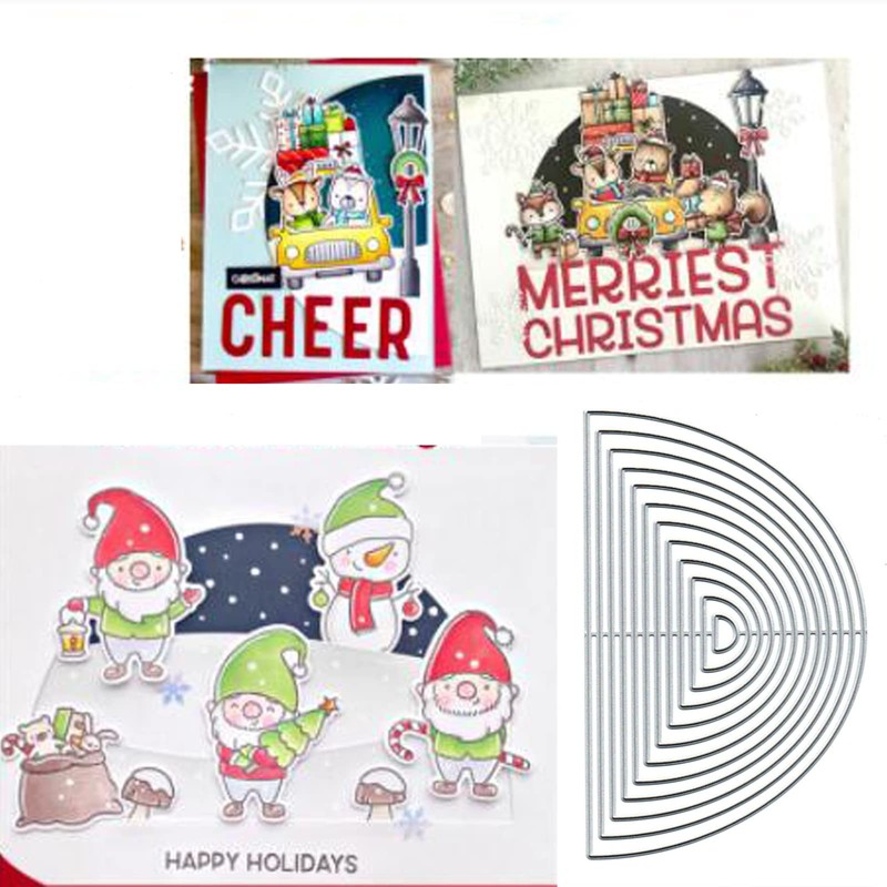 12pcs Nesting Half-Circle Metal Die Cuts,Merry Christmas Nest Round Cutting Dies Cut Stencils DIY Scrapbooking Decorative Embossing Paper Scrapbooking Card Making