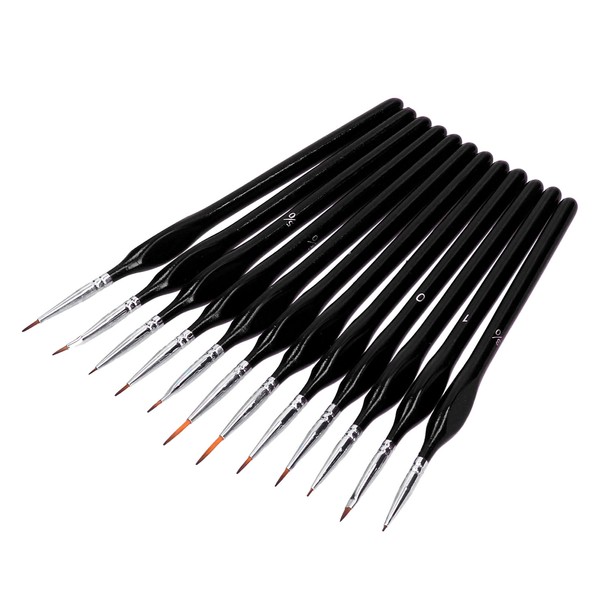 12Pcs Paint Brush Set for Face MakeUp Nail Scale Model Painting Watercolor Line Drawing(Black )