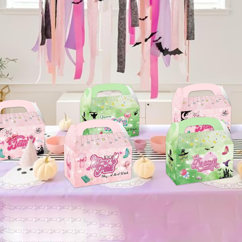 - Wicked party bags feature bold pink and green witch-themed designs, adding a playful yet mysterious vibe to your Halloween or magical birthday celebrations