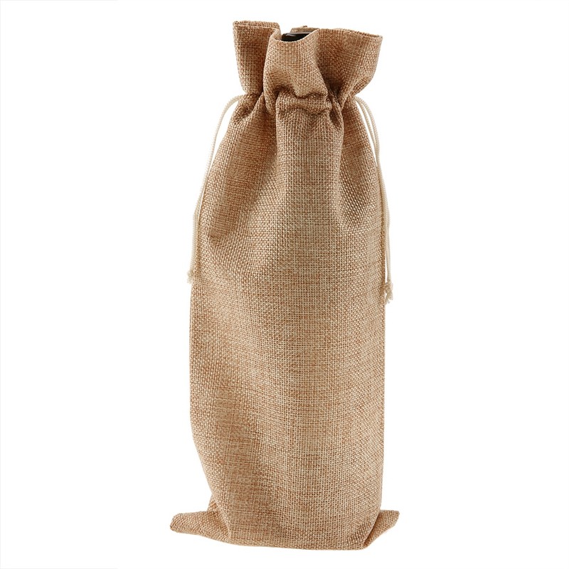 12pcs Simple Linen Fabric Wine Bag with Drawstring Champagne Decorative Cover (Deep Linen)