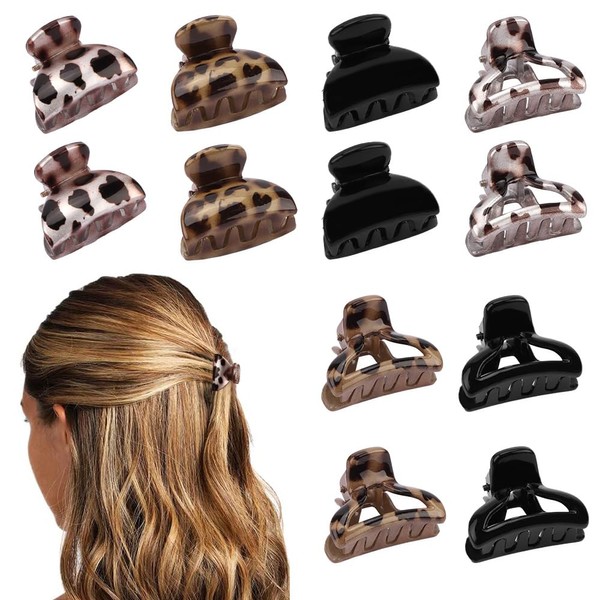 12Pcs Small Hair Clips for Women, Small Claw Clips for Thin Thick Hair, No-Slip Grip Leopard Print Jaw Clip Mini Claw Clips Tiny Hair Accessories for Women Girls Tortoise & Black (Style B)