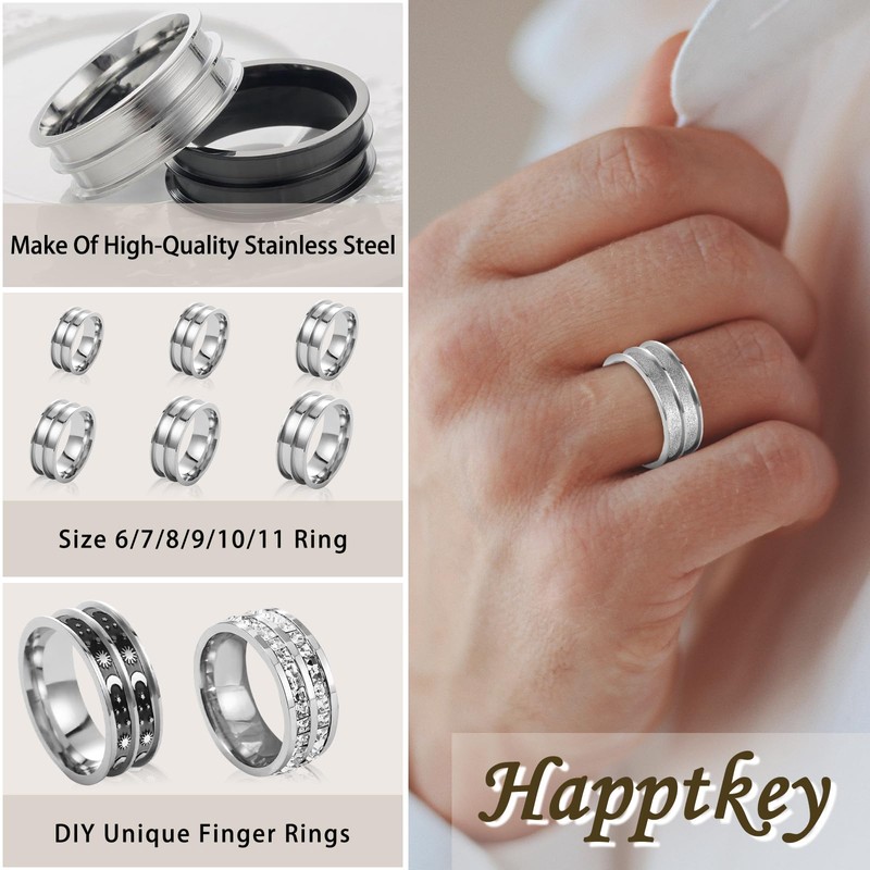 - 【Fun DIY Creative】These blank core rings are designed with double groove settings for inlay crafts, perfect for adding the crushed crystals, opal, pearl, meteorite, metals, gems, rhinestones, and shell to create a unique ring. You can also engrave your name, lucky numbers or sweet words to express your creativity and love.