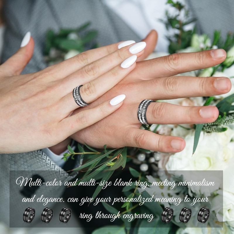 - 【6 Different Sizes】Come with 6 different sizes: 6/7/8/9/10/11, suitable for most people. Inner diameters are 17mm/0.67'', 18mm/0.71'', 19mm/0.75'', 20mm/0.79'', 21mm/0.83'', 22mm/0.87''.Wide:8mm/0.31''. The appropriate width is perfect for DIY your ring.