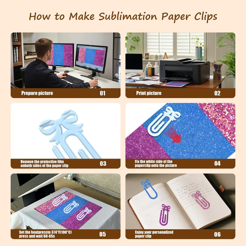 - BeePeep【Why Use the Paper Clip Blank?】 Because you can unleash your creativity with our bow sublimation paper clips with family or friend! Sublimation paper clips blanks jumbo provide the ideal blank canvas for personalization - whether it's a standout bookmark or a beautiful custom gift. Add an inspiring quote, bold color or detailed artwork to create a unique bookmark that's both practical and eye-catching