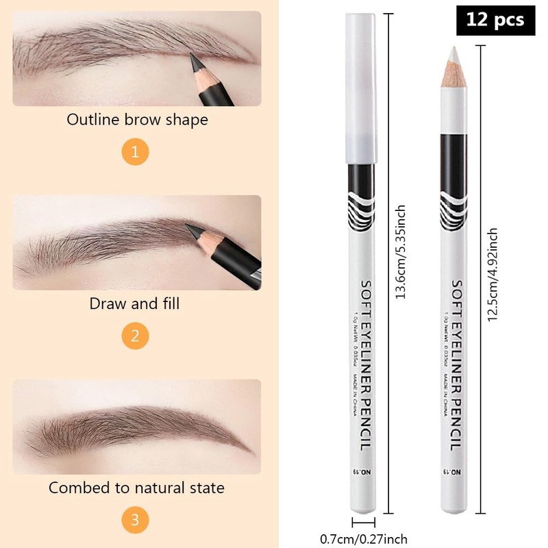 12Pcs wooden hard-core eyebrow pencils, eyebrow and eyeliner pencils, waterproof and sweat-proof eyebrow pencils for beginners, White eyebrow pencils, White eyeliner pencils
