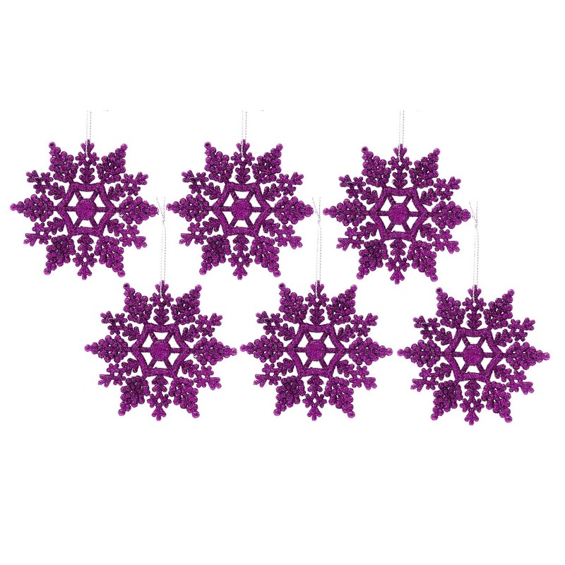 12pk Glitter Snowflake Hanging Decorations, Christmas Tree Snowflake Baubles/Ornaments (Dk Purple)