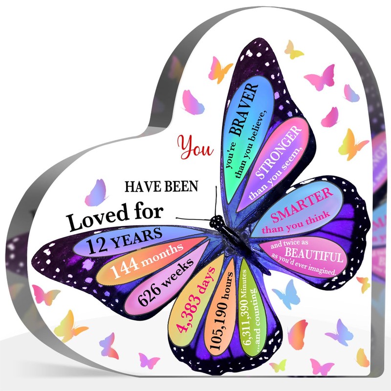 12th Birthday Acrylic Sign, 12 Year Old Girl Birthday Gifts, Inspirational Butterfly Keepsake Sign for Girls Boys, Happy 12 Birthday Gifts Idea for Daughter Girls, Table Desk for Home