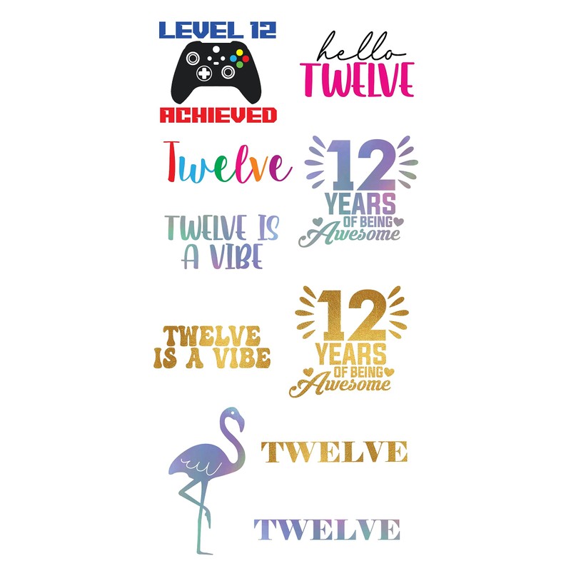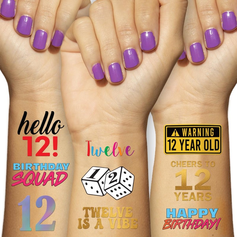- Congrats on the big 1-2! What better way to celebrate than with our 12th birthday temporary tattoo pack?