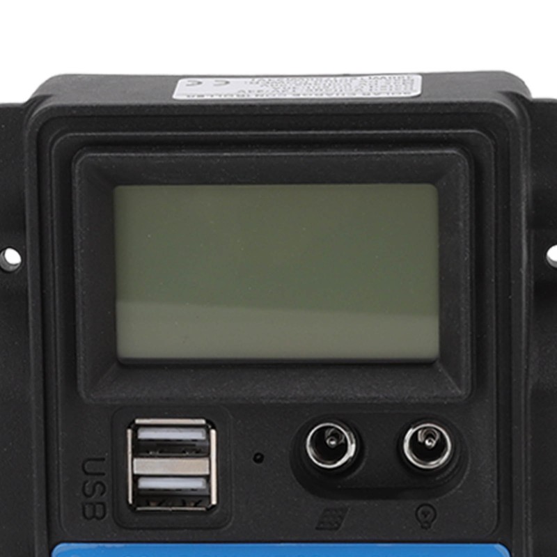 1、High Accuracy Chip: The controller is equipped with industrial grade master chip. Charge and discharge parameters can be adjusted. Support light control and delay control. 2、Large LCD Display: All kinds of data are clear at a glance for easy inspection by the users. The temperature, charging current and discharge current, accumulated electricity generated and discharged are clear. 3、Dual USB Output: The Solar charge controller is equipped with dual USB output interfaces, with a maximum current of 2.5A, which supports the charging of phones. 4、Protection Functions: Built in over current, short circuit protection, open circuit protection, reverse connection protection are all self recovery type, without damaging the controller. Anti backflow circuit and ultra low heat. 5、Wide Application: The solar controller can be widely used for various applications, e.g. solar RV, household system and industrial field monitoring, etc.