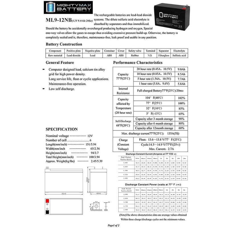 - ML9-12 SLA is a 12V 9AH Sealed Lead Acid (SLA) rechargeable maintenance free battery.