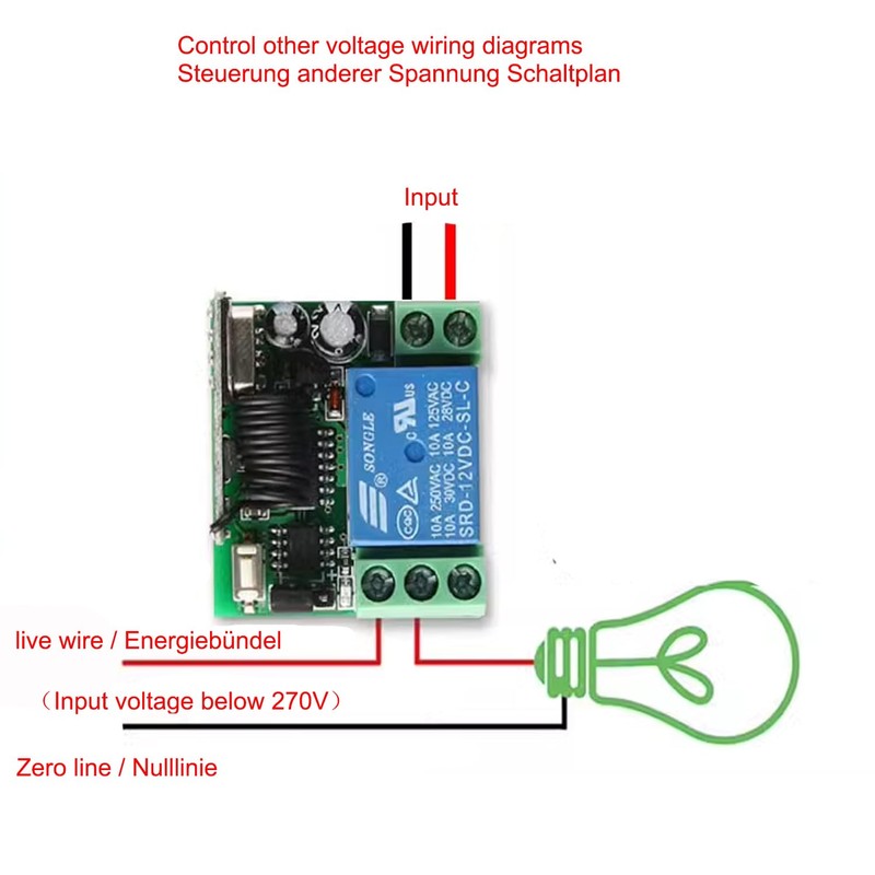 - Wide voltage input: DC 5V-24V, channel: 1 channels, coding method: learning code, remote distance: 20m (in open field) wireless control, easy to install. The remote control is very small and suitable for various DIY.