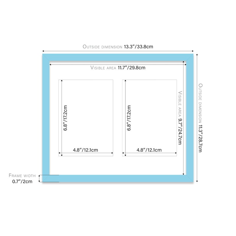 12x10 Inch 2 Opening Photo Collage Frame, Display Two 7x5 Inch Photos, Multi Aperture Family Picture Frame, Thin 22mm Edge, Light Blue