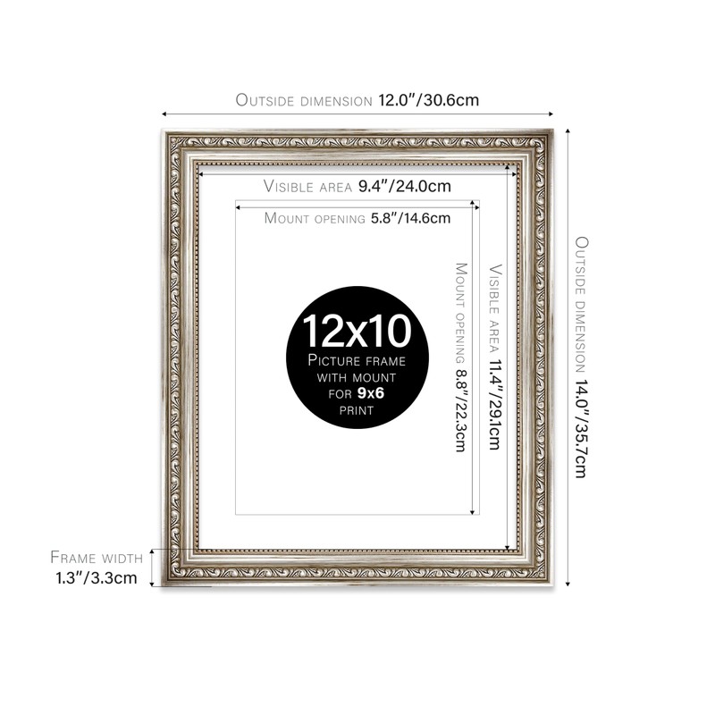 - Classic Design: The 12x10 Silver ornate photo frame adds a touch of sophistication to any decor. With its intricate detailing, this frame is perfect for showcasing your 9x6 or 12x10 pictures, enhancing their beauty and making them stand out.