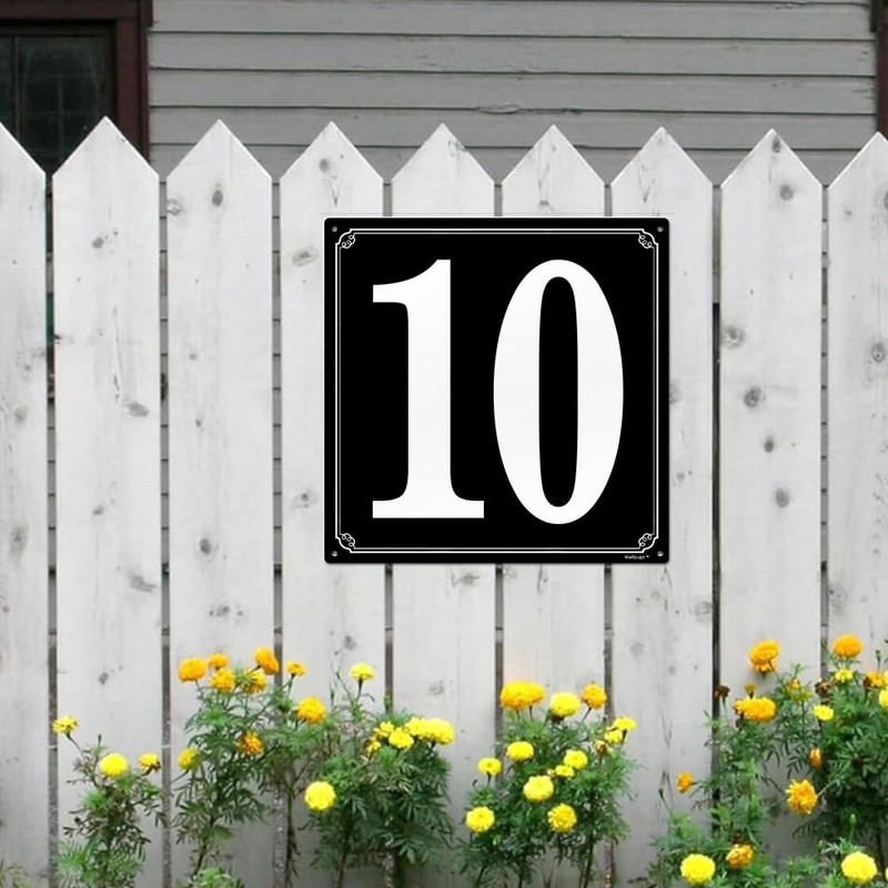 12x12 inch Metal Number Sign 10, Parking Spot Aluminum Signs, Weatherproof, Fade-Resistant, Curbside Number, Black/White, Ideal for Outdoor and Indoor Use