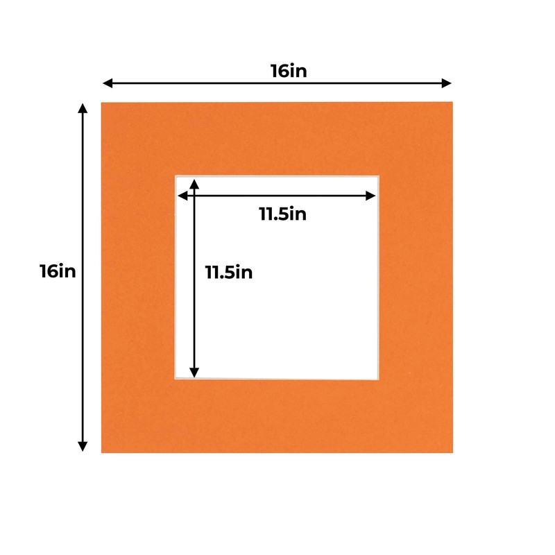 12x12 Mat for 16x16 Frame - Precut Mat Board Acid-Free Orange 12x12 Photo Matte Made to Fit a 16x16 Picture Frame, Premium Matboard for Family Photos, Show Kits, Art, Picture Framing, Pack of 1 Mat