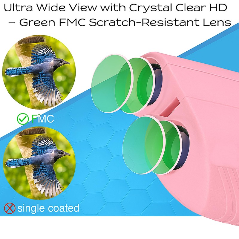 • đź”­Superior Optical Clarity with FMC Coating: Featuring fully multi-coated lenses and a premium BAK4 prism, these binoculars deliver bright, high-contrast images even in low-light conditions. The advanced coating technology minimizes glare and maximizes light transmission for vivid, true-to-life visuals.