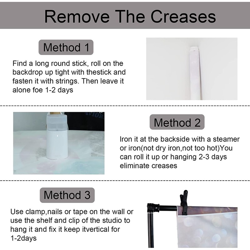 In order to facilitate transport and packaging, the backdrop will be folded to send. If wrinkles exist, you can smooth out the wrinkles by the following method.
