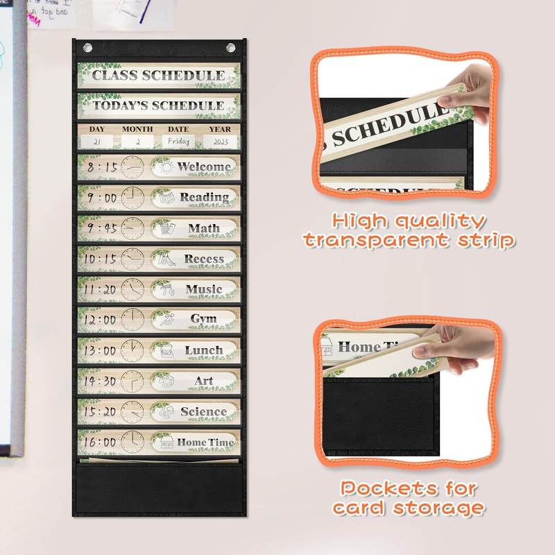 - High Quality : Schedule pocket chart made of heavy-duty nylon material and features sturdy stitching, ensuring longevity and convenience, Its exceptional construction ensures enduring strength and resilience.