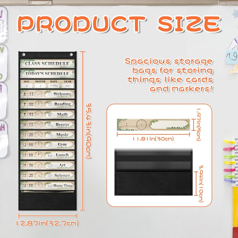 - Hang it Anywhere : The Daily Schedule Pocket Chart Kit is ultra-light, making it easy to carry and allowing you to take it anywhere. Its flat design ensures effortless storage, making it the perfect on-the-go organizational companion.