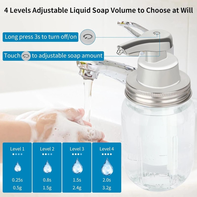 - Adjustable Dispensing Options: With a 4-step adjustable soap volume, customize your dispensing experience to precisely deliver 0.25-2.0 seconds of soap, catering to the varying dosage needs of both adults and children.