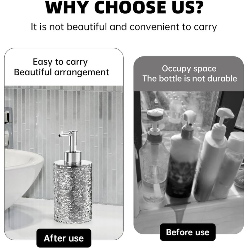 - Widely applicable: This soap dispenser is perfect for holding liquid soap, hand sanitizer, lotion, shampoo, conditioner, and more. It’s ideal for bathrooms, kitchens, or office spaces, and also makes a thoughtful gift for friends and family