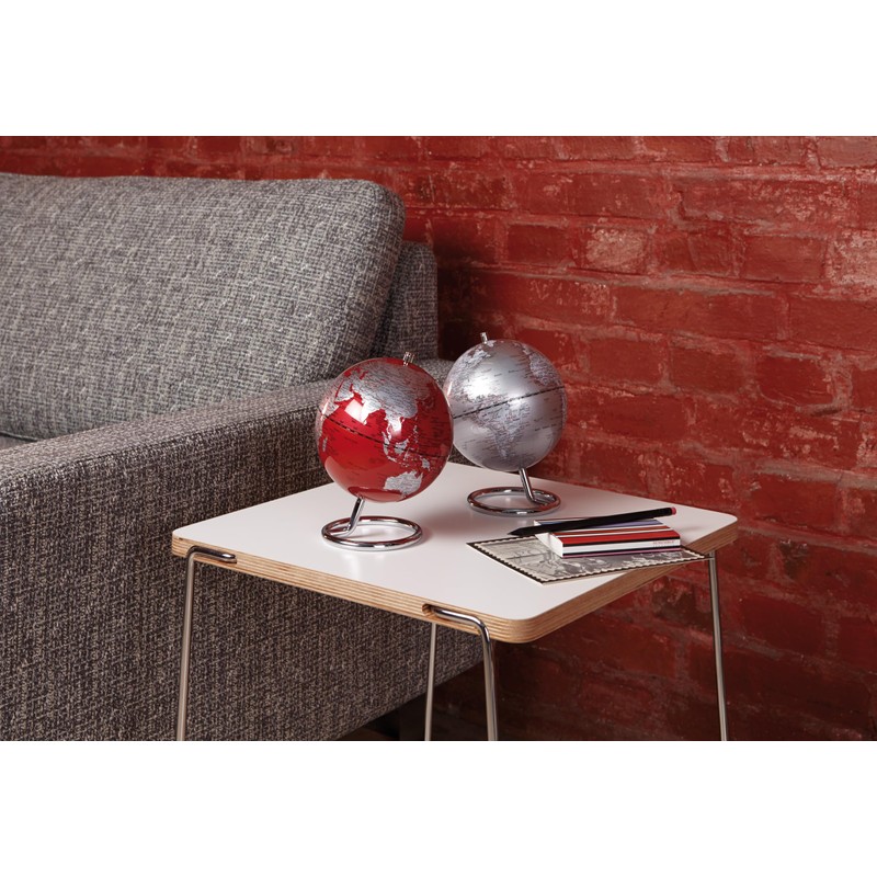 13 cm Diameter Globe - Galilei - Chrome Plated Ring Shaped Metal Base - Movable Axis - Red, Silver - TROIKA Original