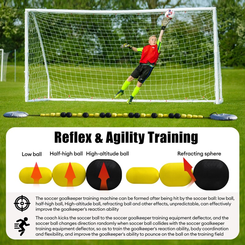 - Reflex and Agility Training: The Pro GK single line deflector with 9 Low ball, 10 Half-high ball, 10 High-altitude ball. The versatility of the design provides unpredictability in the direction of the ball and improves the player's reflexes
